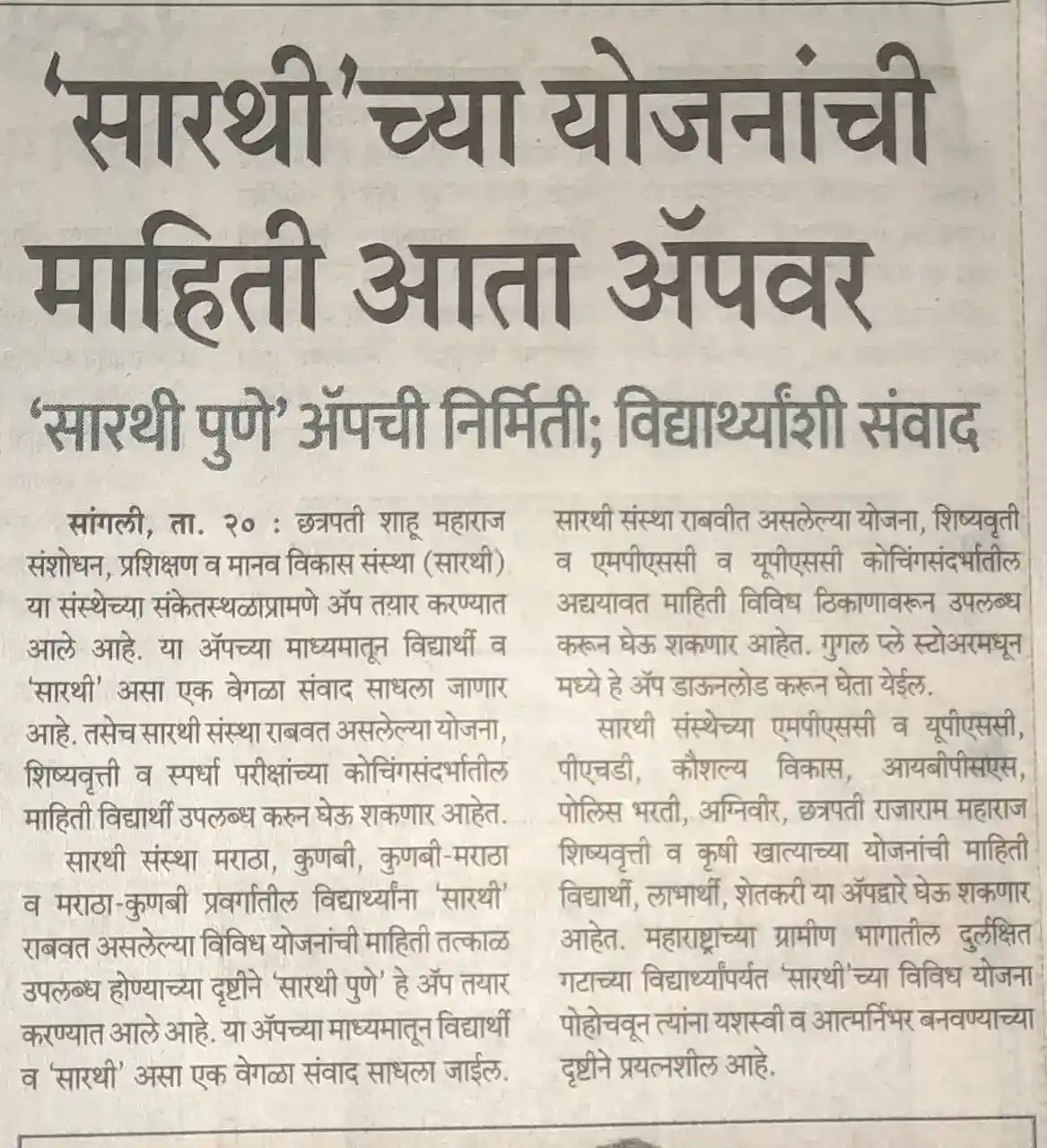 सारथी उपक्रम माहिती पुस्तिका